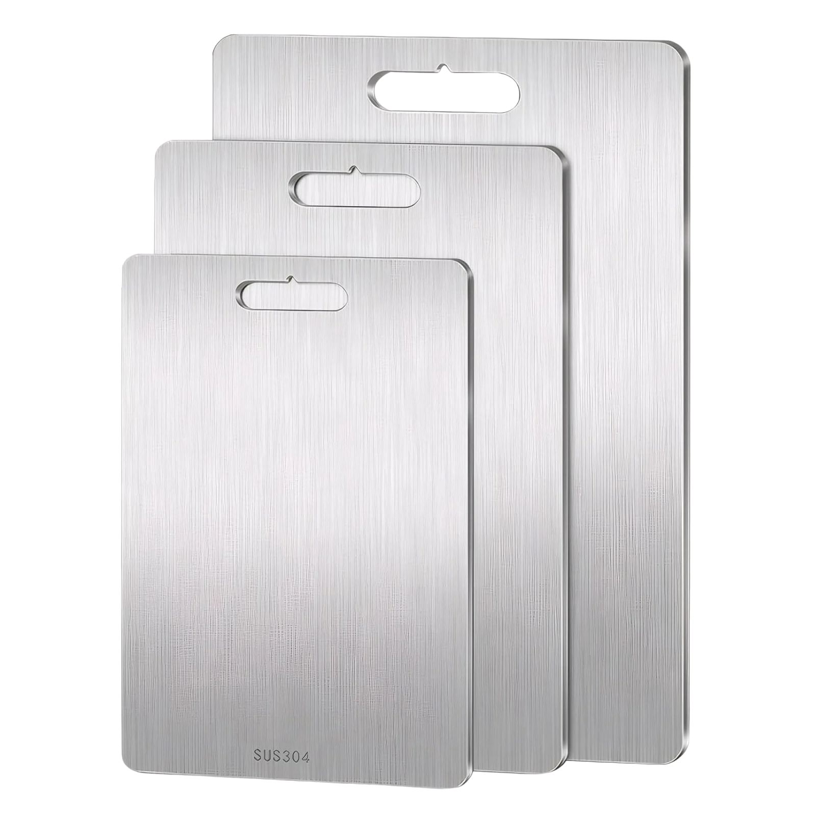 1. 100% reines Titan: Titan ist ein lebensmittelechtes, nicht-toxisches Material, das keine schädlichen Substanzen freisetzt. Im Gegensatz zu Kunststoffbrettern, die Mikroplastik abgeben können, oder Holzbrettern, die Feuchtigkeit und Bakterien aufnehmen, bleibt das KatuChef Schneidebrett sicher und sauber.